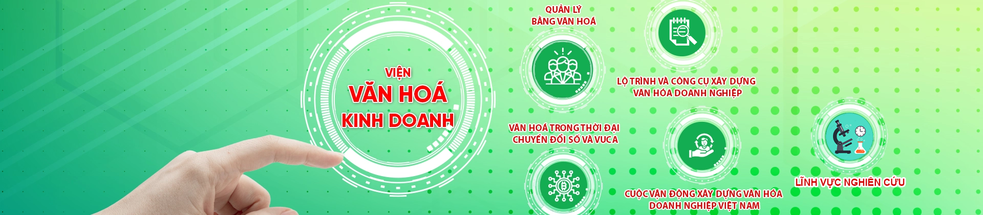 là tổ chức khoa học và công nghệ trực thuộc Hiệp hội Phát triển Văn hóa doanh nghiệp Việt Nam, được Bộ trưởng Bộ Khoa học và Công nghệ cấp Giấy chứng nhận Đăng ký hoạt động khoa học và công nghệ. Với sứ mệnh “Vì một nền văn hóa kinh doanh Việt trách nhiệm, nhân văn và bền vững” cùng với tâm huyết những giá trị cốt lõi “ Tín - Trí - Thực” của mình, Viện Văn hóa kinh doanh thiết lập những phương pháp nghiên cứu chuyên môn, đào tạo, huấn luyện, tư vấn, thiết kế, xây dựng,… mang tính ứng dụng cao nhằm giúp toàn thể Quý doanh nghiệp, tổ chức, tập đoàn, đơn vị tiếp cận, trải nghiệm và xử lý tốt nhất các vấn đề của văn hóa kinh doanh, văn hóa tổ chức, văn hóa đội nhóm, văn hóa công sở, văn hóa doanh nghiệp, văn hóa quản trị một cách hiệu quả nhất.CHUYÊN GIA VÀ ĐỘI NGŨ CHÚNG TÔI