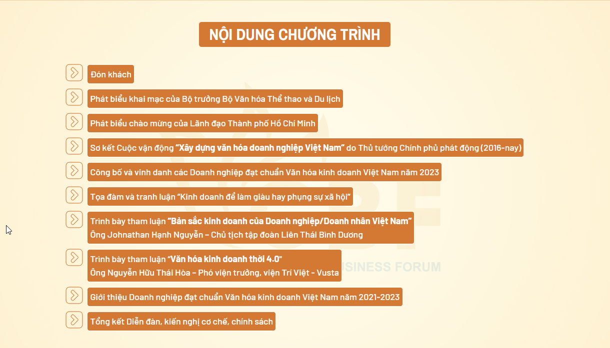 Tạo một Diễn đàn quốc gia mời Lãnh đạo Đảng, Nhà nước gặp gỡ, trao đổi với các nhà nghiên cứu, nhà quản lý, cộng đồng doanh nghiệp về văn hóa doanh nghiệp, văn hóa kinh doanh trong bối cảnh mới.